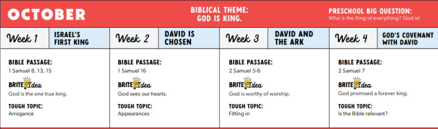 Sparks is for age 5 kindergarteners, 1st and 2nd graders. Sparks ignites the curiosity of early elementary-age kids to learn about the people and events of the Bible, building a foundation of wisdom for knowing Christ.
