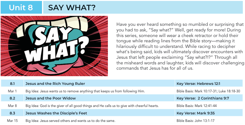 Sparks is for age 5 kindergarteners, 1st and 2nd graders. Sparks ignites the curiosity of early elementary-age kids to learn about the people and events of the Bible, building a foundation of wisdom for knowing Christ.